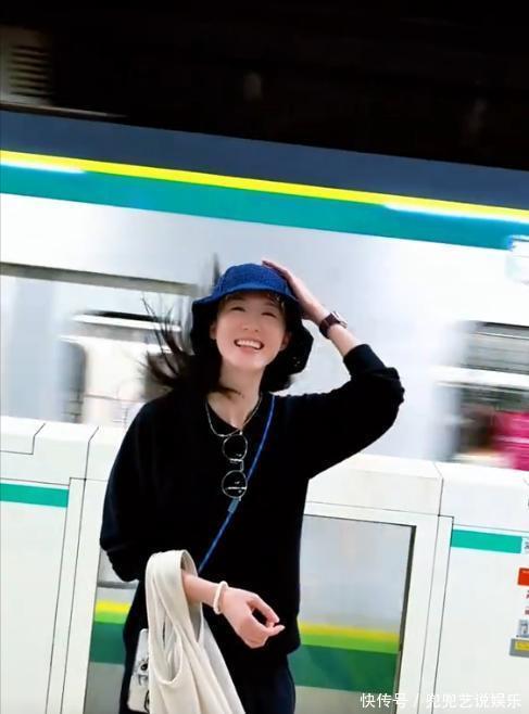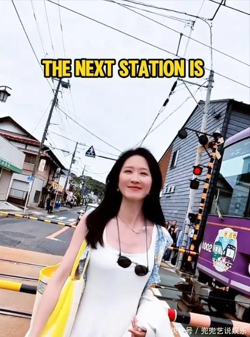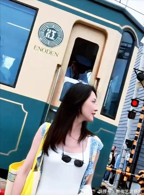 但是看视频里她笑容满面,乌黑的头发齐肩,搭配一条白色裙子,脖子上还挂了一个墨镜,背了一个黄色的帆布包,看起来很悠闲。她身后的环境也十分优美,是在一个火车站前面拍摄的,火车是紫色的,火车开过来把她的头发吹起来像个仙女。